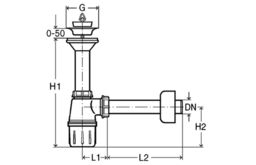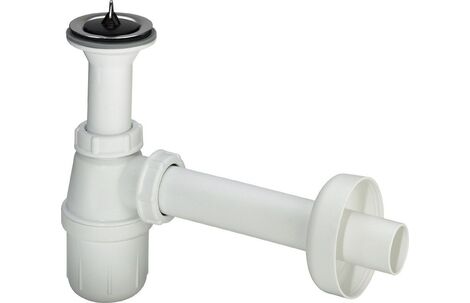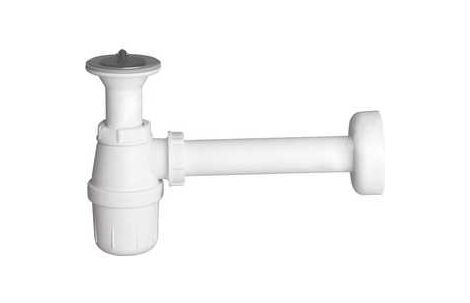 Бутылочный - имеет форму бутылки в той части, где размещается гидрозатвор, соединение с канализацией может быть выполнено как прямой, так и гофрированной трубой.
