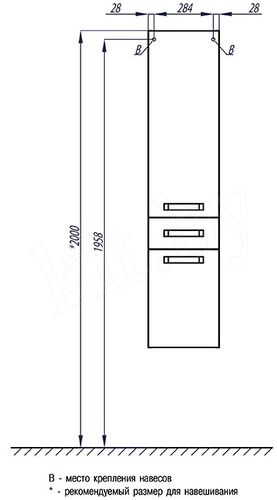 Монтаж Различают шкафы напольные, подвесные и универсальные. Напольные шкафы могут устанавливаться непосредственно на пол, а могут иметь хромированные ножки. Наличие ножек защищает изделие от попадания влаги на дно изделия. Подвесные шкафы монтируются к стене на необходимом расстоянии от пола. Позволяют сэкономить пространство в нижней части помещения, а отсутствие контакта с водой гарантирует их долгую службу. Универсальные шкафы предполагают возможность и того, и другого вида монтажа. Монтажподвесной
