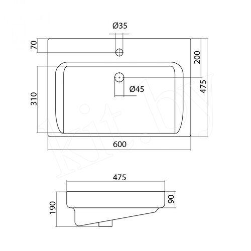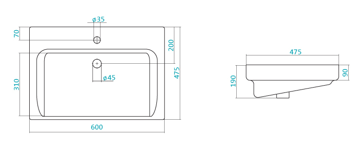 Форма раковиныпрямоугольная