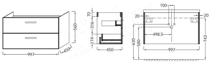Подвесные тумбы монтируются к стене на необходимом расстоянии от пола. Позволяют сэкономить пространство в нижней части помещения, а отсутствие контакта с водой гарантирует их долгую службу.