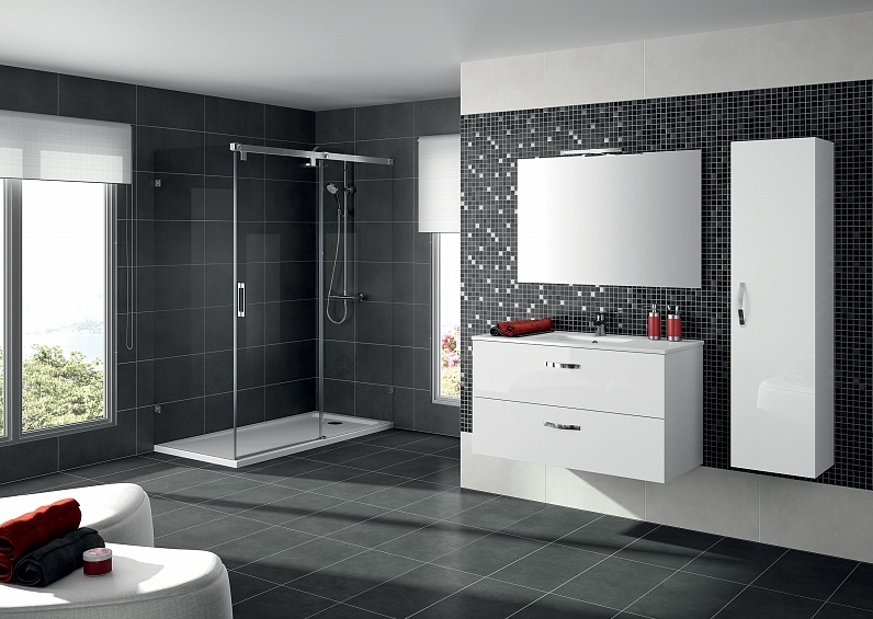 Стекло. Стеклянный корпус может быть изготовлен из прозрачного или матового стекла. Это наиболее водостойкий материал, так как ни пар, ни большое количество воды не могут его повредить. Мебель из стекла очень гигиенична, за ней легко ухаживать и поддерживать в чистоте. Недостаток: сильный удар может ее повредить.