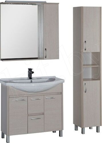 Материал корпуса Корпус тумбы может быть изготовлен из самых разнообразных материалов. ДСП (древесно-стружечная плита) ДСП, изготавливаемый из древесных опилок и стружек, пропитанных связывающим веществом — формальдегидными смолами, является самым распространенным материалом для изготовления корпусной мебели. В производстве мебели для ванных комнат используется специальный вид ДСП – с повышенной влагостойкостью, кроме того поверхность изделий обрабатывается специальными водостойкими эмалями. Плюсы: водостойкость, прочность, легкость в обработке. Минусы: наличие в составе формальдегидных смол, которые в определенном количестве выделяются в воздух, а также невозможность тонкой обработки. ЛДСП (ламинированная ДСП) Это ДСП, облицованная пленкой на основе термореактивных полимеров (бумажно-смоляными пленками). Плюсы: многообразие цветов и фактур, имитация фактуры натурального дерева, устойчивость к всевозможным механическим повреждениям, устойчивость к термическому воздействию. Минусы те же, что и у ДСП. ДВП (древесноволокнистая плита) ДВП производят из натуральной древесины, которую измельчают до волокон. Их увлажняют и прессуют, после чего покрывают лаком или декоративной пленкой. Невысокая цена и долговечность сделали этот материал одним из распространенных в изготовлении задних стенок шкафов, днищ выдвижных ящиков. Технология не дает возможности выпускать такие плиты внушительной толщины, поэтому и весь комплект мебели из них не производят. Однако в своем сегменте они порадует своим отличным качеством, а также повышенной экологичностью. МДФ (мелко-дисперсная фракция) МДФ появился благодаря усовершенствованным технологиям, использовавшимся при производстве древесноволокнистых плит (ДВП). Технологии, применяемые при производстве МДФ, исключают использование фенола и вредных эпоксидных смол, а поэтому гарантируют экологическую чистоту и безвредность изделия для здоровья человека. Изделия из МДФ обладают целым рядом преимуществ: они имеют повышенную ударопрочность, не коробятся от влаги и резких перепадов температуры, устойчивы к различным грибкам и микроорганизмам. Надо отметить, что МДФ стоит дешевле дерева, но превосходит его по многим техническим характеристикам и показателям, таким, например, как влагостойкость и устойчивость механическим повреждениям. Алюминий. Для изготовления мебели из алюминия, чаще всего используется дорогой высококачественный анодированный алюминиевый профиль, который обеспечивает изделиям устойчивость к царапинам и коррозии, не окисляется и не темнеет со временем. Массив дерева. Тумба для ванной комнаты, выполненная из дерева, смотрится роскошно и колоритно, однако требует бережного отношения, поскольку подвержена механическим воздействиям. Для защиты от влажного климата ванной поверхность деревянной мебели обычно обрабатывается водоотталкивающим лаком или защищается соответствующим покрытием. Стекло. Стеклянный корпус может быть изготовлен из прозрачного или матового стекла. Это наиболее водостойкий материал, так как ни пар, ни большое количество воды не могут его повредить. Мебель из стекла очень гигиенична, за ней легко ухаживать и поддерживать в чистоте. Недостаток: сильный удар может ее повредить. Пластик. Пластик – один из очень популярных и практичных 