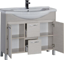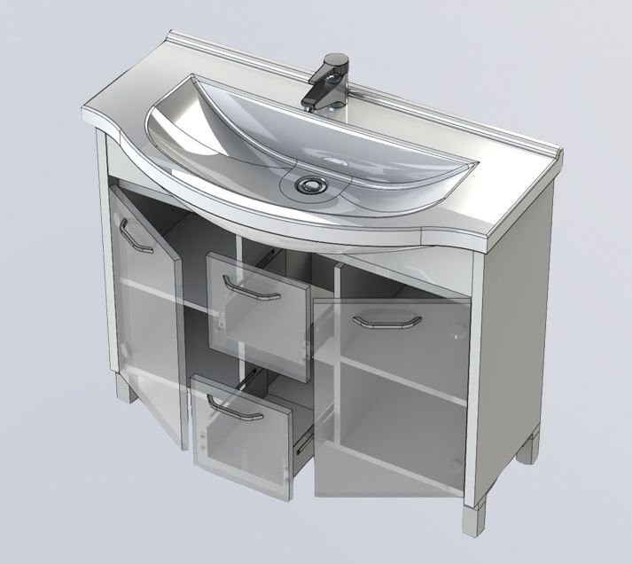 Напольные тумбы могут устанавливаться непосредственно на пол, а могут иметь хромированные ножки. Наличие ножек защищает изделие от попадания влаги на дно изделия.