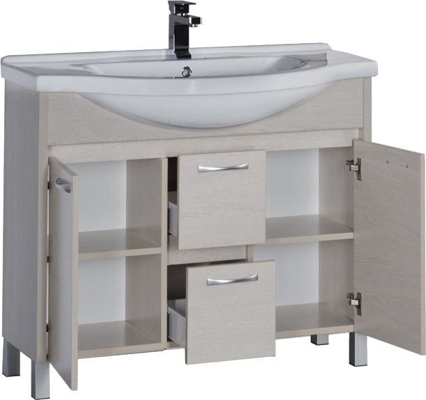 • тумба с раковиной: предполагает использование данного типа мебели вместе с керамической чашей. Большинство тумб, представленных на нашем сайте, имеет два варианта комплектации на выбор – с раковиной или без нее. Однако некоторые модели реализуются исключительно с раковиной;