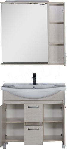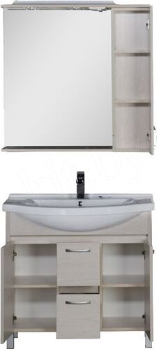• с открытыми полками: могут дополнять конструкцию тумб с выдвижными ящиками или распашными дверками. Открытые полки могут использоваться как для хранения необходимых ванных принадлежностей, так и для декоративного оформления помещения с помощью дизайнерских аксессуаров;