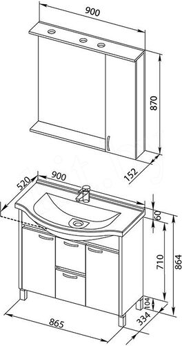 Высота, см Высота изделия в сантиметрах. Если тумба предусматривает в комплекте наличие ножек, то высота изделия определяется вместе с ними. Этот габарит указан для изделия в минимальной комплектации (без раковины или с раковиной), если иного не указано в дополнительной информации. Высота, см52