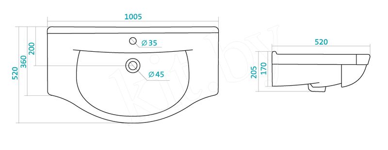 Отверстие под перелив Наличие отверстия под перелив. Отверстие под переливда