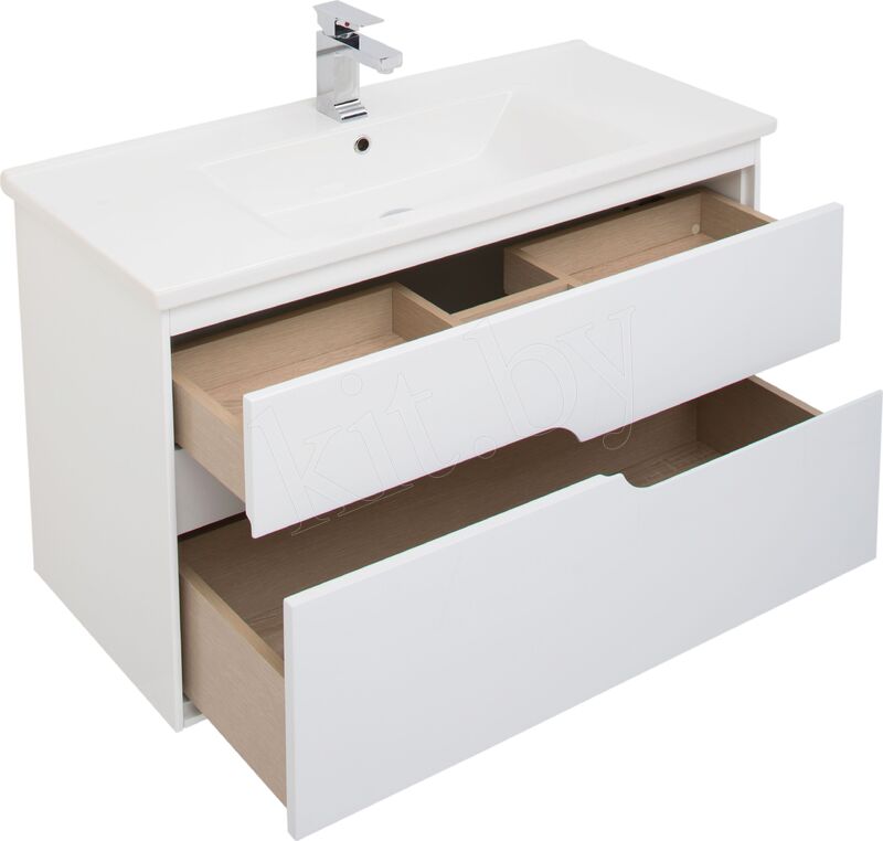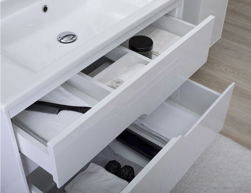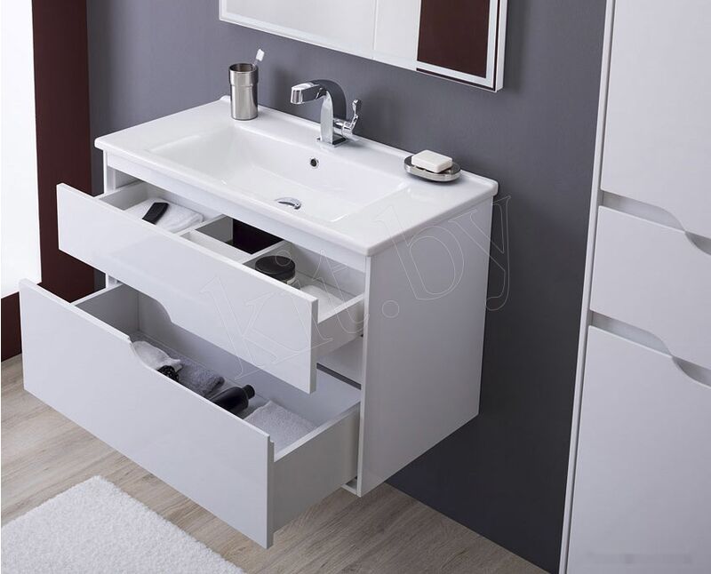 • тумба с раковиной: предполагает использование данного типа мебели вместе с керамической чашей. Большинство тумб, представленных на нашем сайте, имеет два варианта комплектации на выбор – с раковиной или без нее. Однако некоторые модели реализуются исключительно с раковиной;