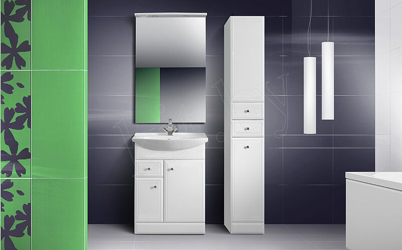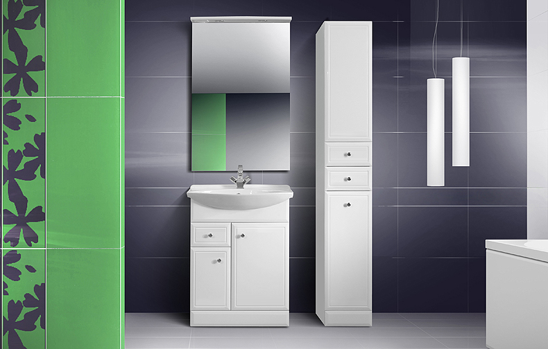 • шкаф-пенал: чаще всего имеет узкую и длинную форму, что позволяет устанавливать его даже в небольших помещениях. Компактность этого типа мебели прекрасно сочетается с высокой функциональностью. Шкаф-пенал отлично подходит для хранения полотенец, косметики и других необходимых ванных принадлежностей. Этот тип мебели может устанавливаться на пол или крепиться к стене;
