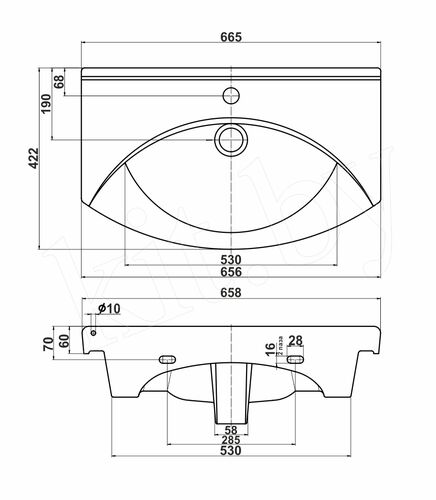 Отверстие под перелив Наличие отверстия под перелив. Отверстие под переливда