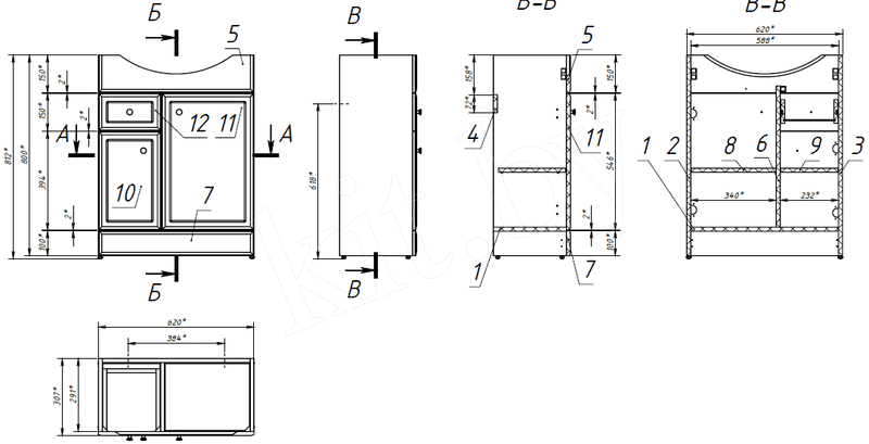 Высота, см Высота изделия в сантиметрах. Если тумба предусматривает в комплекте наличие ножек, то высота изделия определяется вместе с ними. Этот габарит указан для изделия в минимальной комплектации (без раковины или с раковиной), если иного не указано в дополнительной информации. Высота, см81.2