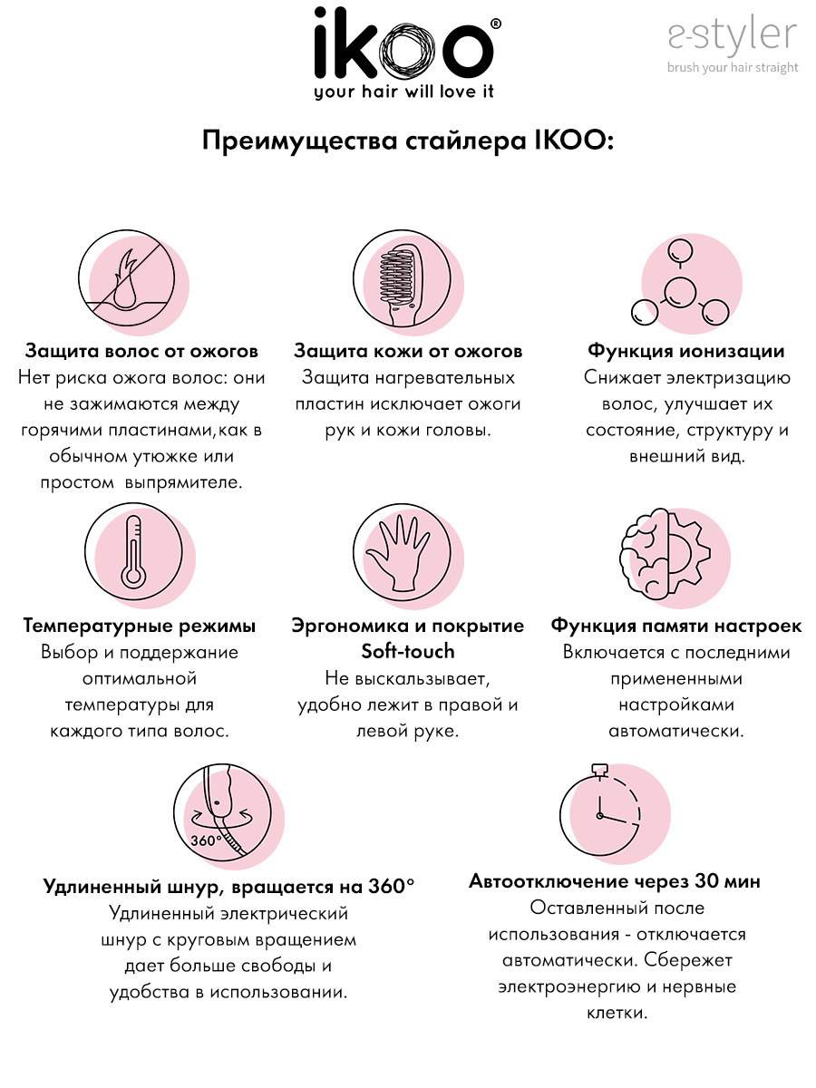 ikoo Инновационная (Керамика, ION, 150-230 С, защита от ожогов) Расческа выпрямитель для волос/мультистайлер (Германия) White