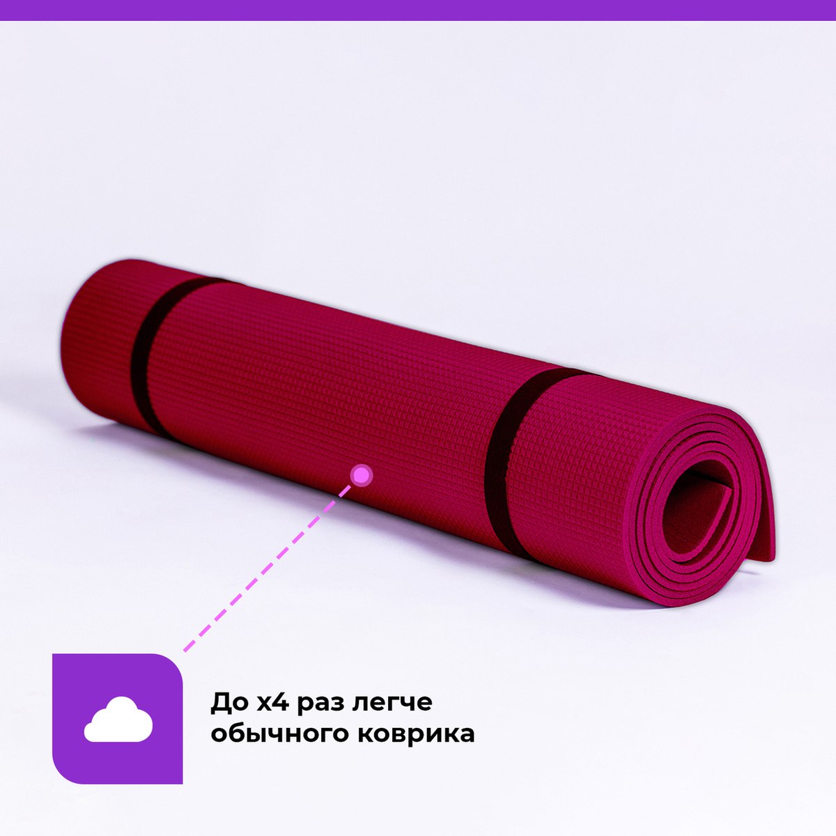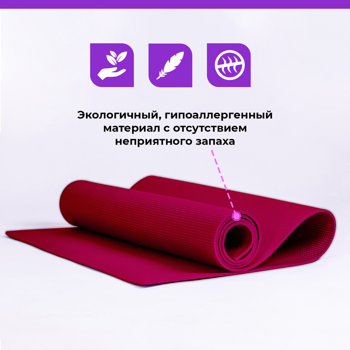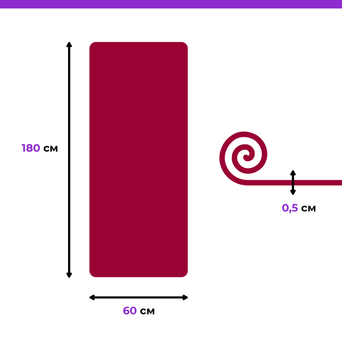 Коврик для йоги и фитнеса 180x60x0,5 см. Вишневый