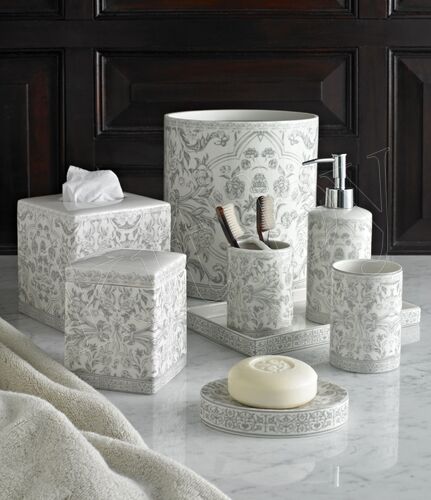 - Материал аксессуара Помня о том, что ванная комната с повышенной влажностью «выставляет» высокие требования к качеству материалов, современные производители изготавливают аксессуары из надежного сырья. Стекло, керамика, пластик, металл – аксессуары из этих материалов представлены на рынке в широком ассортименте, и у каждого из них есть свои преимущества. Так, пластиковое изделие – один из самых недорогих вариантов, который может похвастаться богатой цветовой гаммой. Дороже обойдутся стеклянные аксессуары, в то же время они обещают сделать Ваш интерьер максимально стильным и привлекательным. Вы сами можете определить, аксессуары из какого стекла – матового, прозрачного, полупрозрачного или цветного – подойдут больше всего. «Долго жить» и не менее красиво и практично обустроить ванную комнату обещают изделия из керамики, а также нержавеющей стали. Нанесенное покрытие делает их более устойчивыми к влаге. Немаленькой популярностью сегодня пользуются аксессуары, изготовленные из нескольких материалов, – к примеру, выигрышно смотрится хромированный держатель, на который крепится стакан из матового стекла. Материал аксессуара фарфор