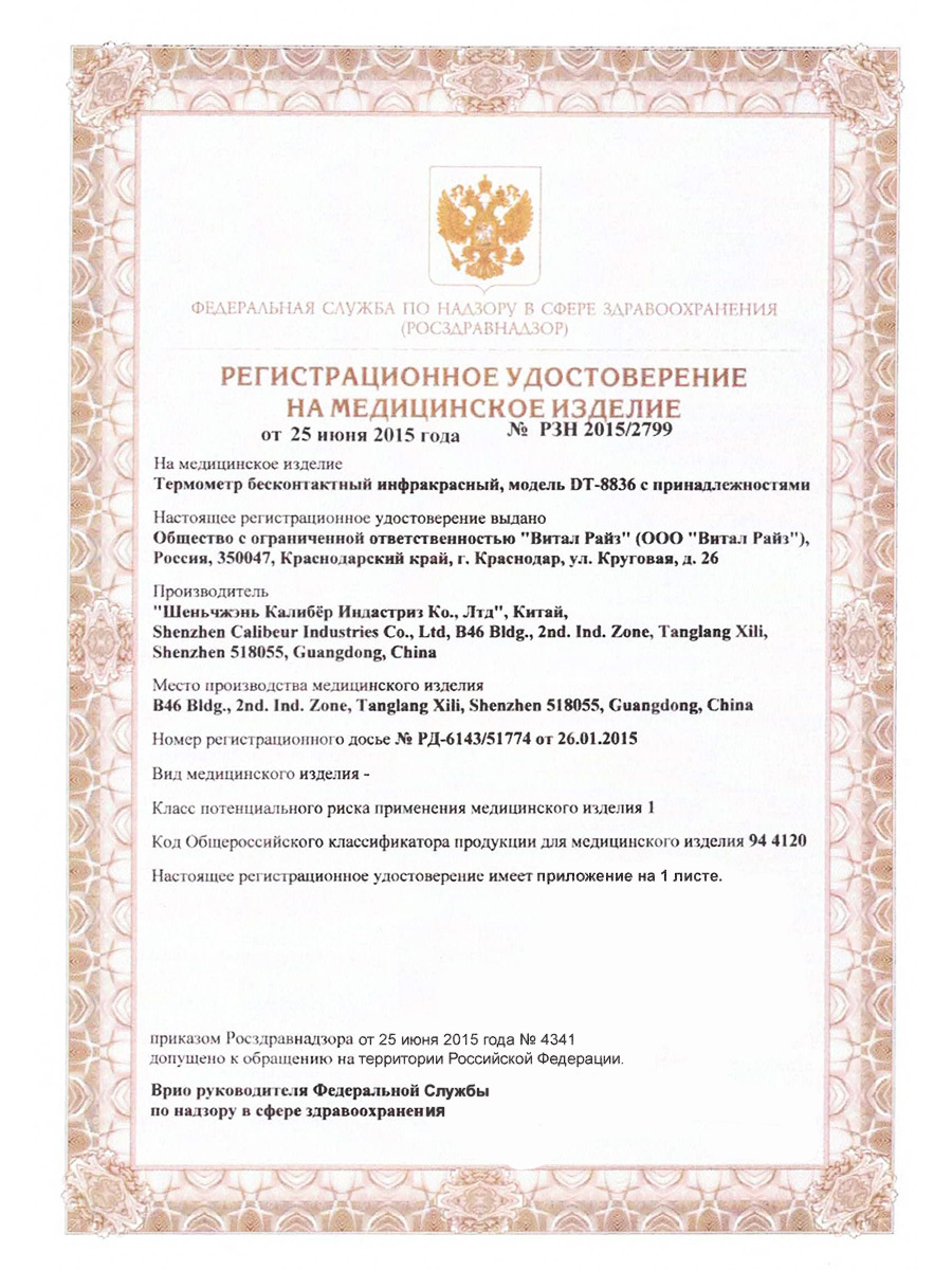 Термометр бесконтактный инфракрасный Cali Medi DT-8836