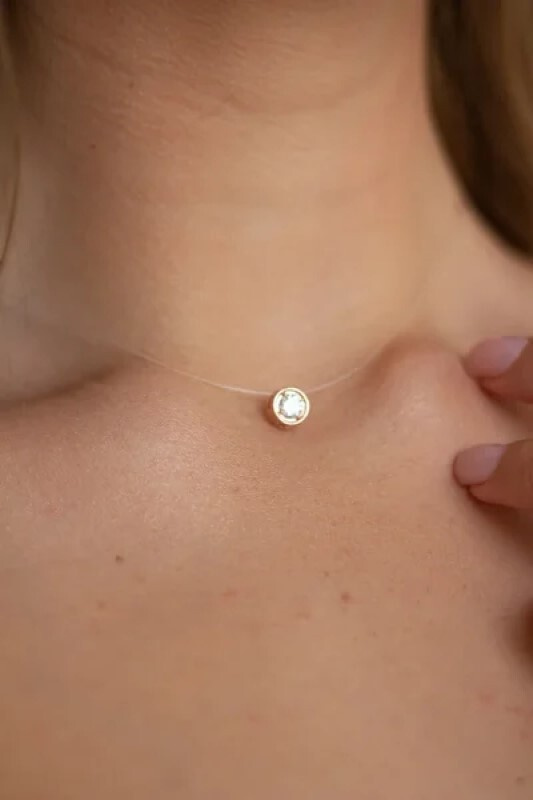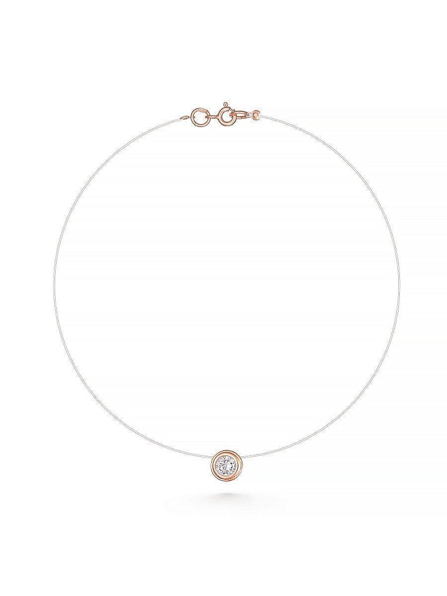 Колье SI Леска с фианитом в позолоченной круглой огранке