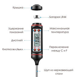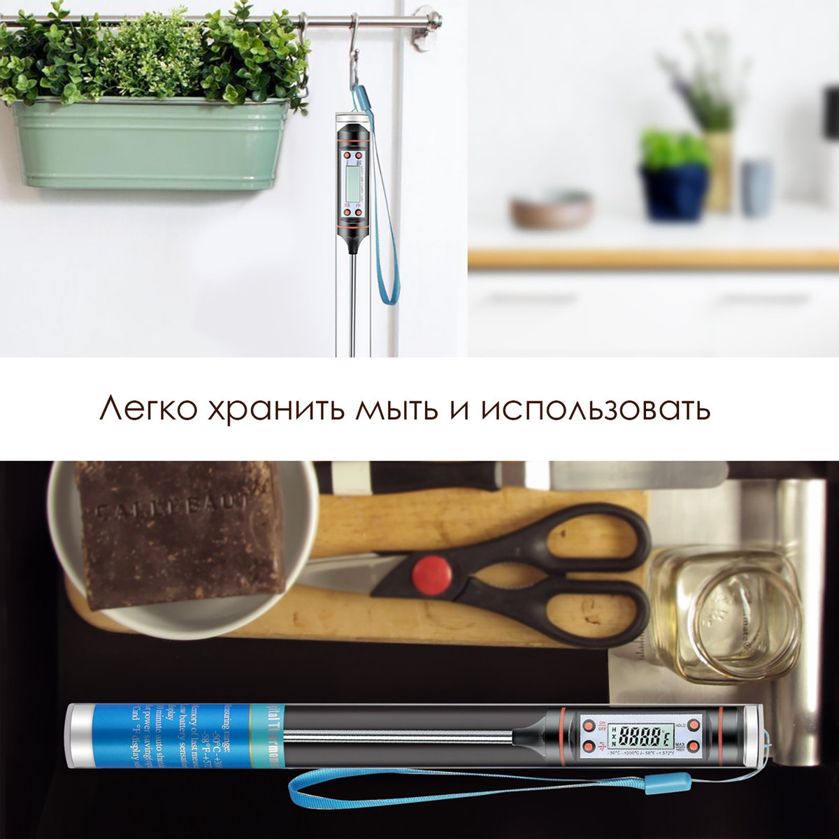 Термометр кулинарный электронный для приготовления пищи, еды, овощей, мяса и гриля, детского питания, смесей, (черный)