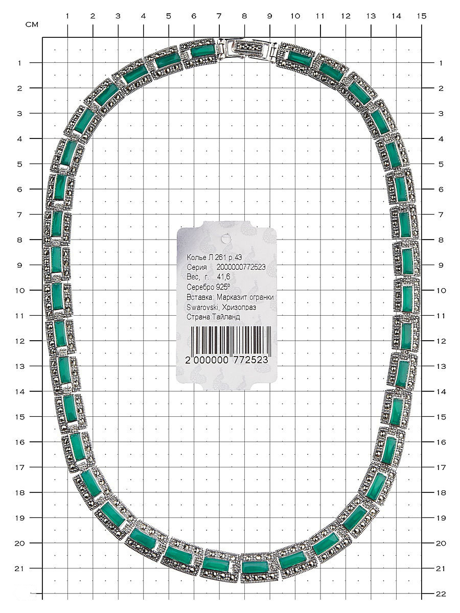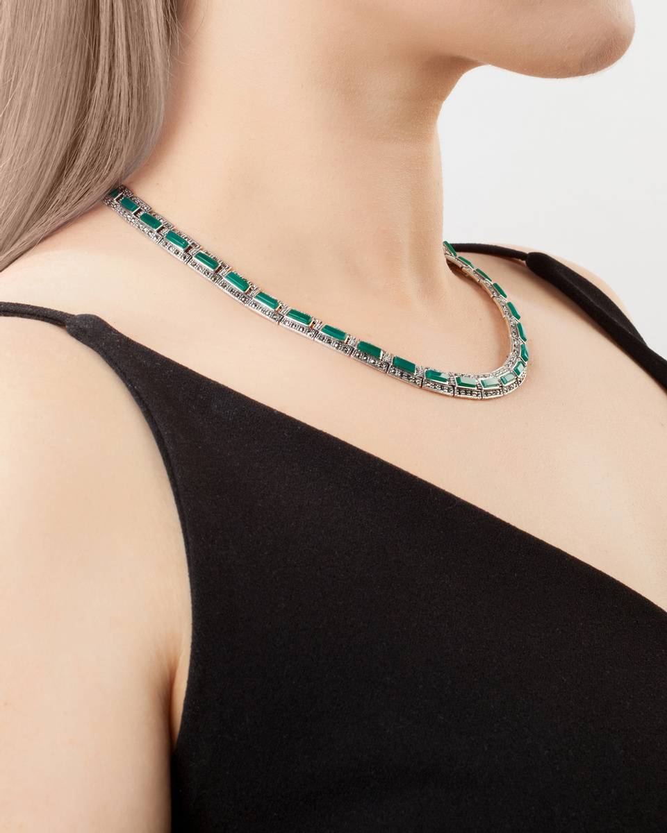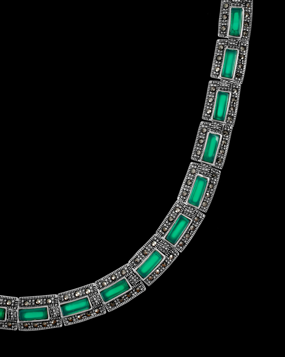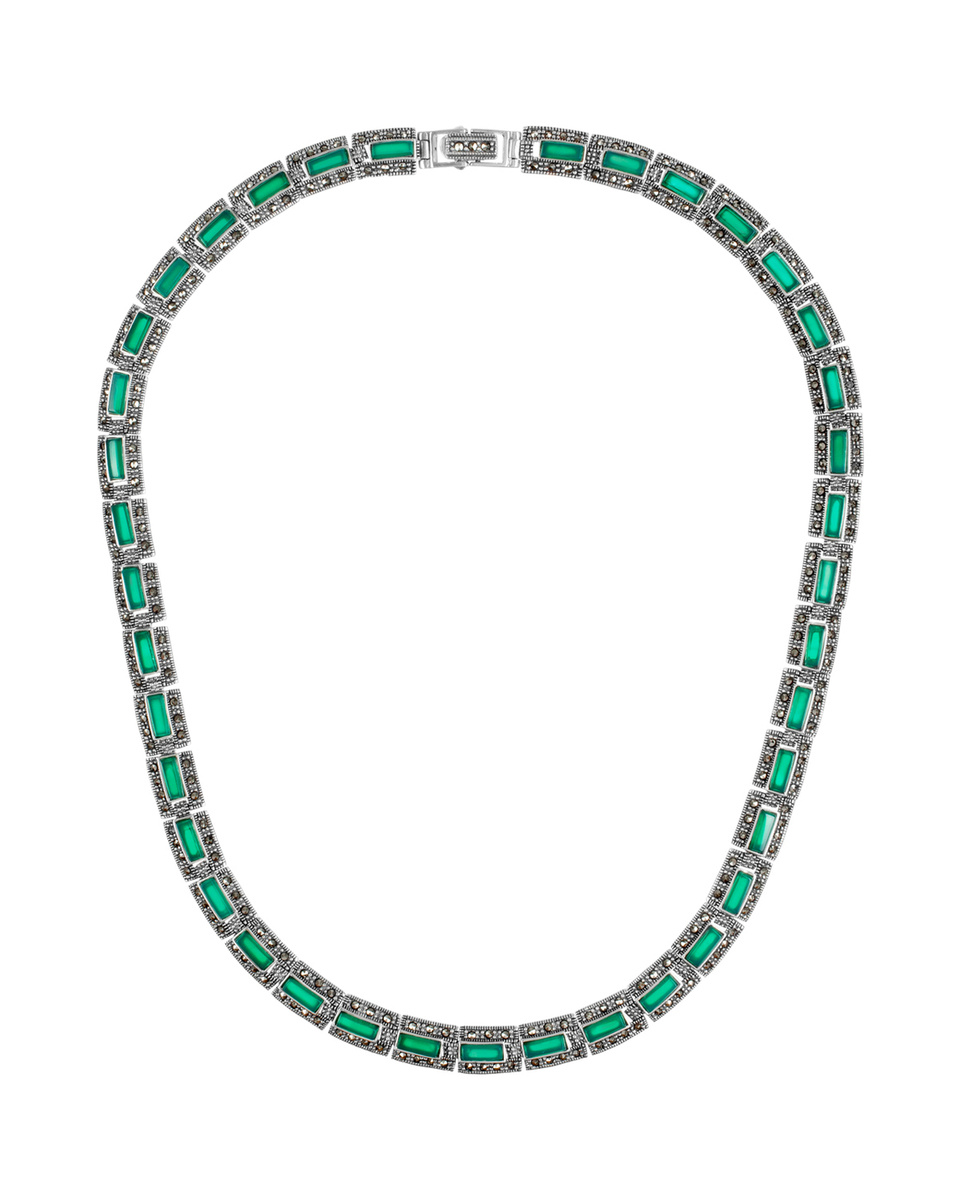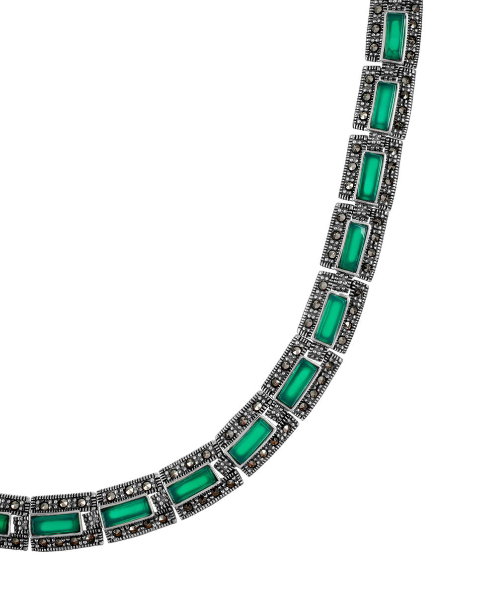 Колье Марказит из оксидированного серебра с хризопразом и марказитами (золотой пирит)
