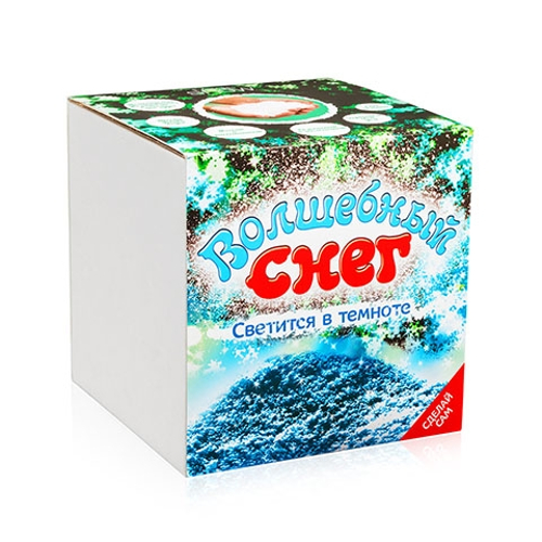 Из 1 пакетика получится 2 стакана Волшебного снега. В наборе помимо сухого Волшебного снега вы найдете люминофор - это вещество, которое поможет снегу светиться в темноте. Смешайте его с вашим Волшебным снегом и получите снег, который выглядит, как обычный снег днем, а ночью светится мягким сине-зеленым светом. Необычная идея для декора дома!