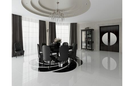 • глянцевая: характеризуется гладкостью и высоким коэффициентом отражения. Глянцевые стены и полы зрительно расширяют пространство за счет своей способности отражать свет. За такой поверхностью достаточно легко ухаживать, так как она практически не впитывает грязь и воду;