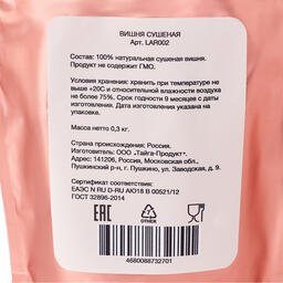 Вишня сушеная "Из Ларька", без сахара, 300 гр