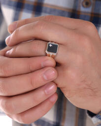 Кольцо ALDA мужское из серебра с фианитами, печатка 102