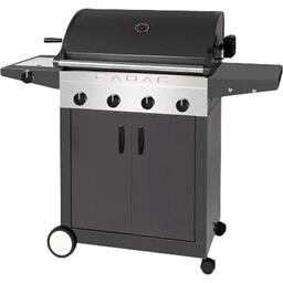 - Комплектация горелки, боковая горелка, закрепленный боковой столик, термогрили, решетка для горячего, тележка с дверцей, место для хранения газ. баллона, колеса с тормозом, резиновые колеса, набор для крепления (гайки, болты, шайбы)