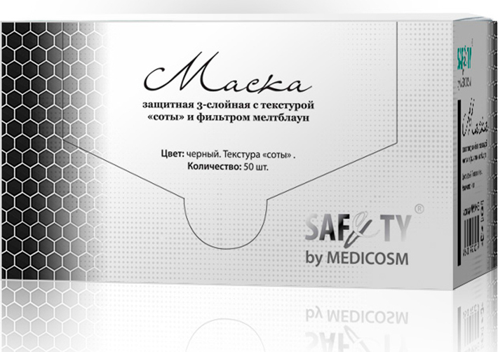 Маски одноразовые Saf&ty "соты", черные, 50 шт в упаковке