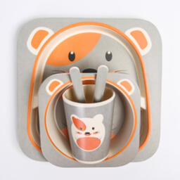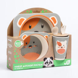 Набор бамбуковой посуды Крошка Я "Мышка", тарелка, миска, стакан, приборы, 5 предметов