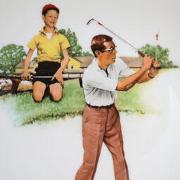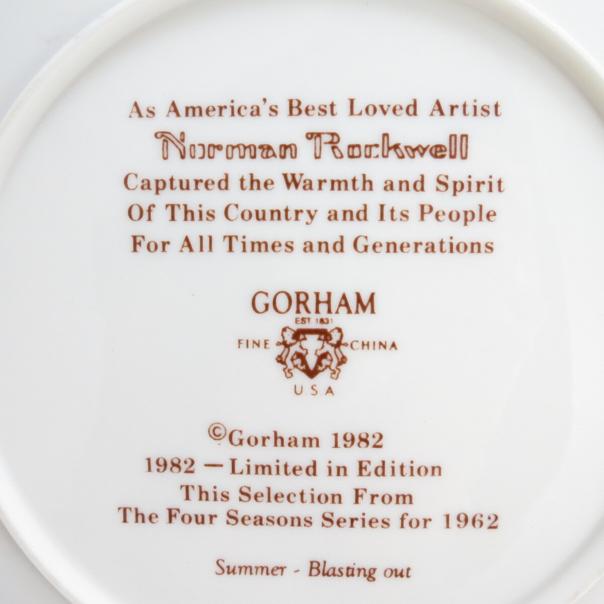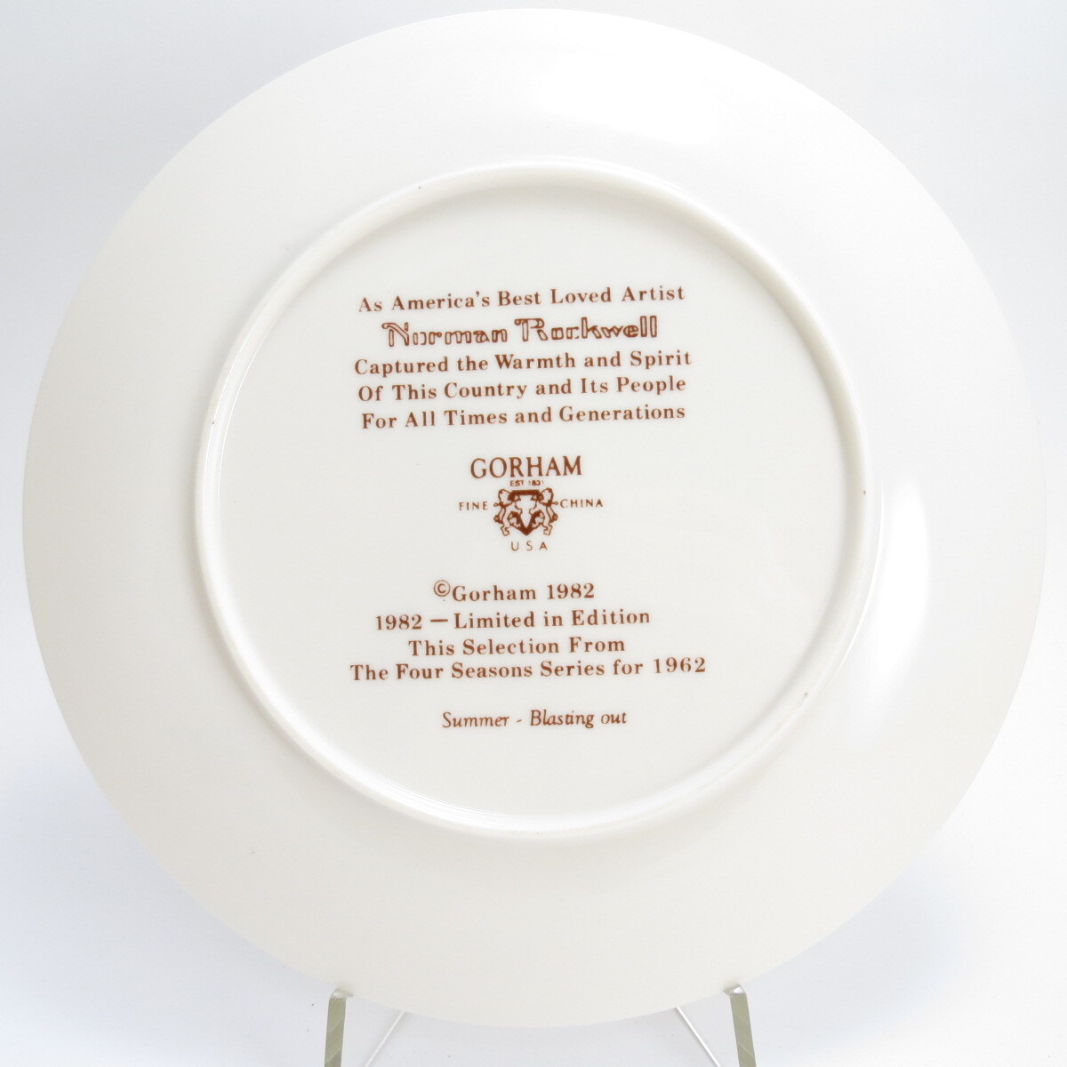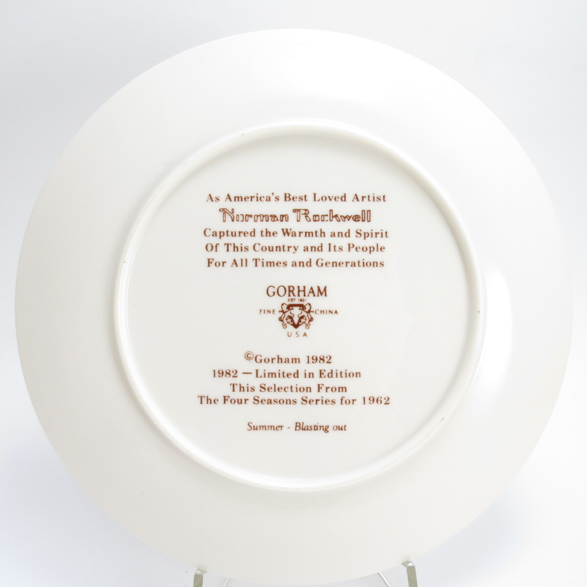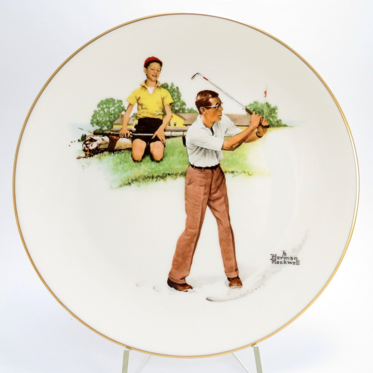 Декоративная тарелка "Забота и Дух Людей: Лето - Попытки выбраться. Игра в гольф". Фарфор, деколь, золочение. США, Gorham Fine China, Норман Роквелл, 1982