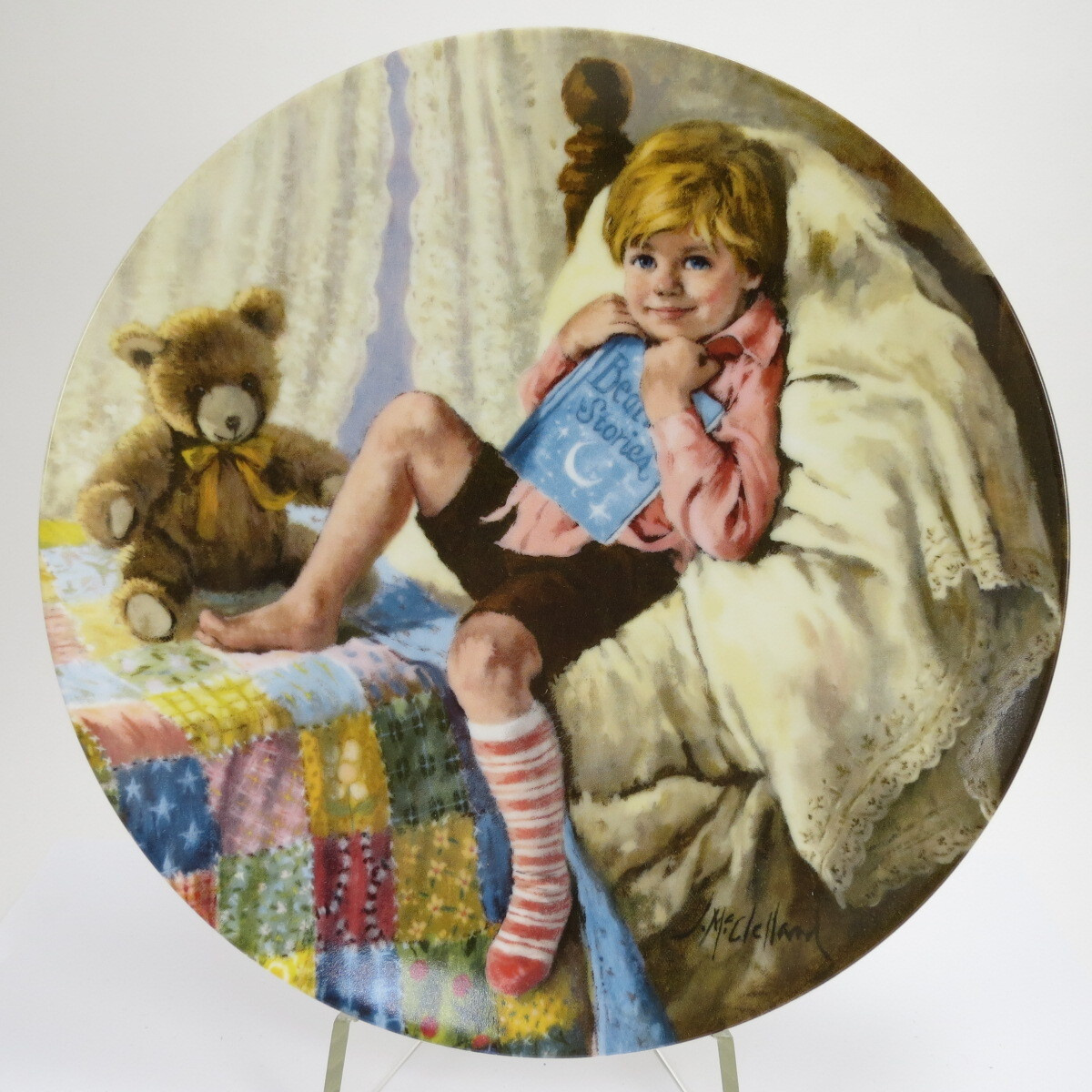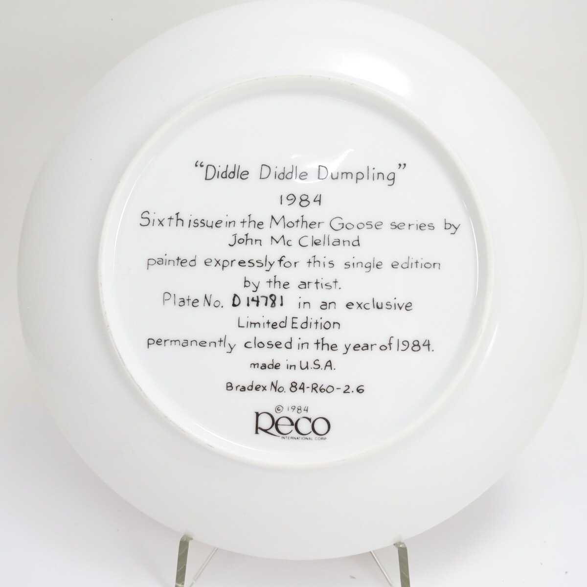 Декоративная винтажная тарелка "Джон Мак-Клелланд. Матушка Гусыня: Дидл-Дидл Пельмень", Фарфор, деколь, золочение. США, Джон Мак-Клелланд, Reco, 1984