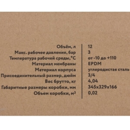 • Модель продукта РАСШИРИТЕЛЬНЫЙ БАК, 12 Л ПЛОСКИЙ