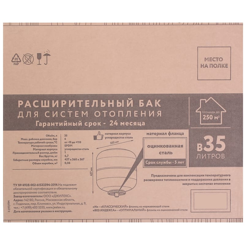 Тип продуктаМембранные расширительные баки для систем отопления, Расширительный бак