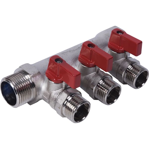 Коллектор с наружной резьбой Valtec на 3 выхода, 3/4"x1/2"