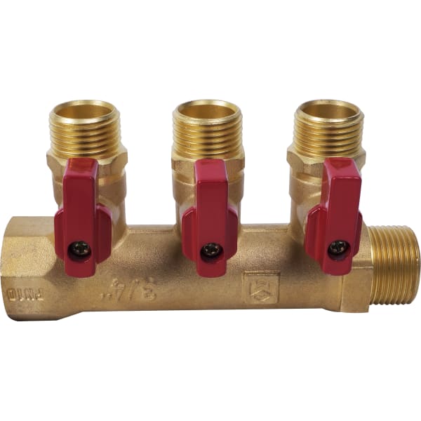 Коллектор с наружной резьбой Minkor на 3 выхода, 3/4"x1/2"