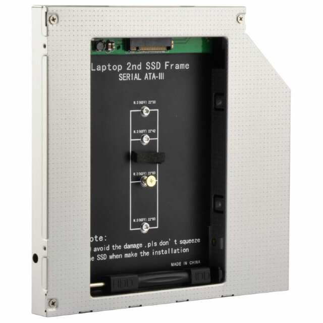 - Основные характеристики для твердотельного накопителя формата M.2 на базе DVD-привода ноутбука, 12.7 мм