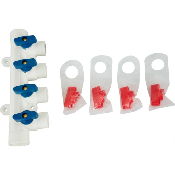 Коллектор на 4 выхода с кранами, 25x20 мм, полипропилен