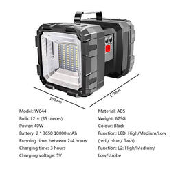 Портативный светодиодный фонарь SEARCHLIGHT W844 + Powerbank USB (ЧЕРНЫЙ)