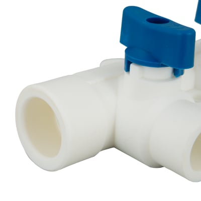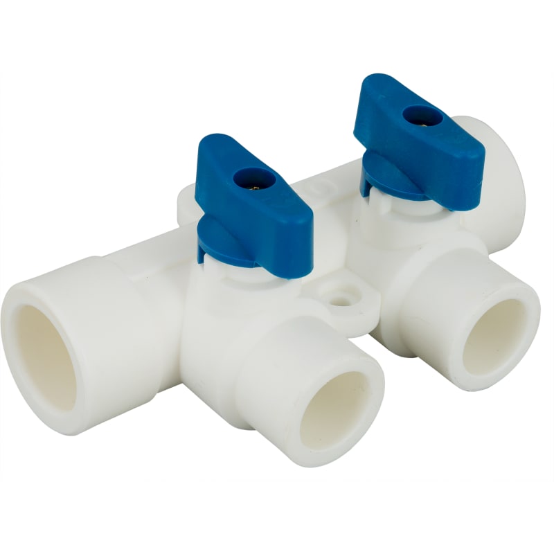 Коллектор на 2 выхода с кранами, 25x20 мм, полипропилен