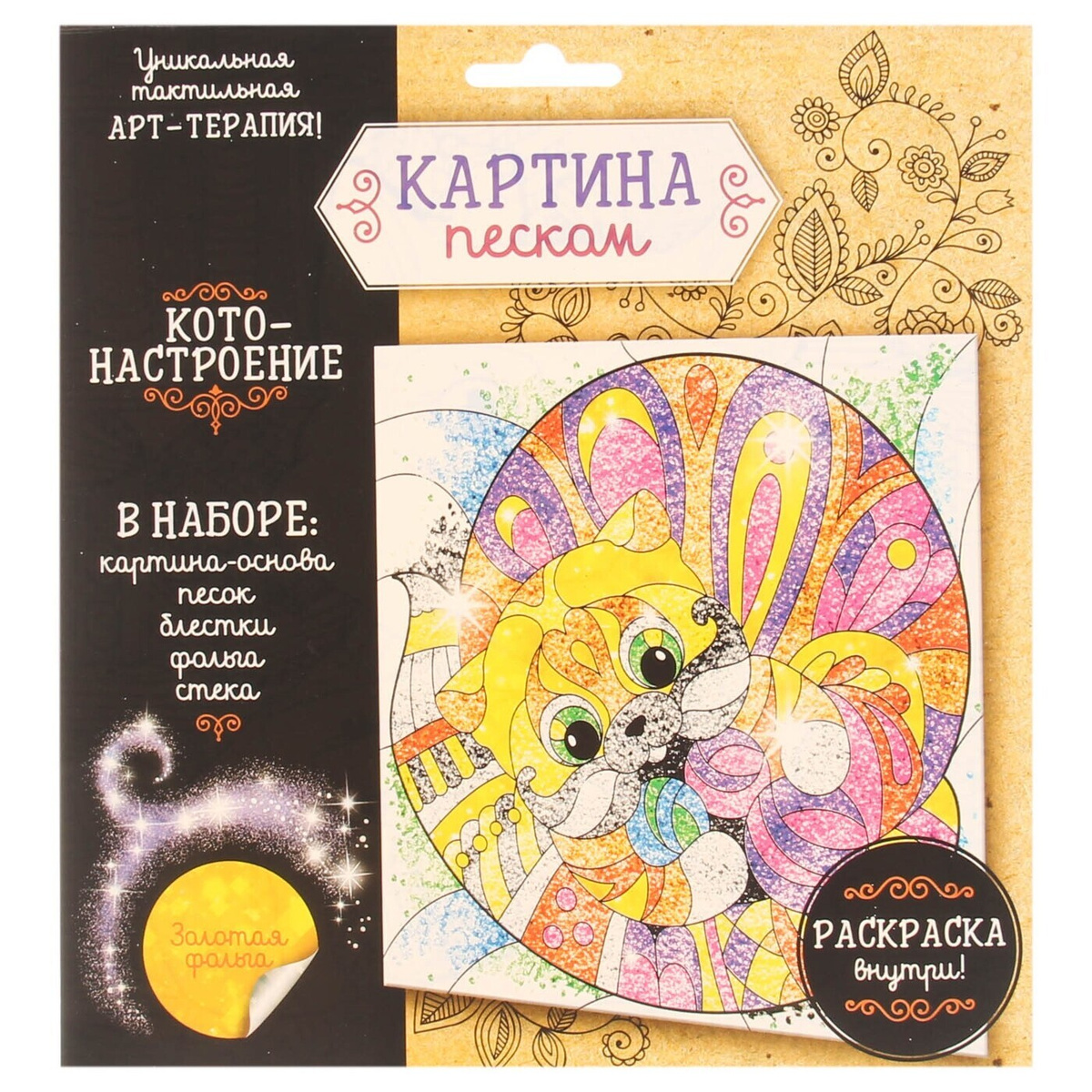 Набор для рисования песком Школа талантов Фреска "Кот", 9 цветов песка