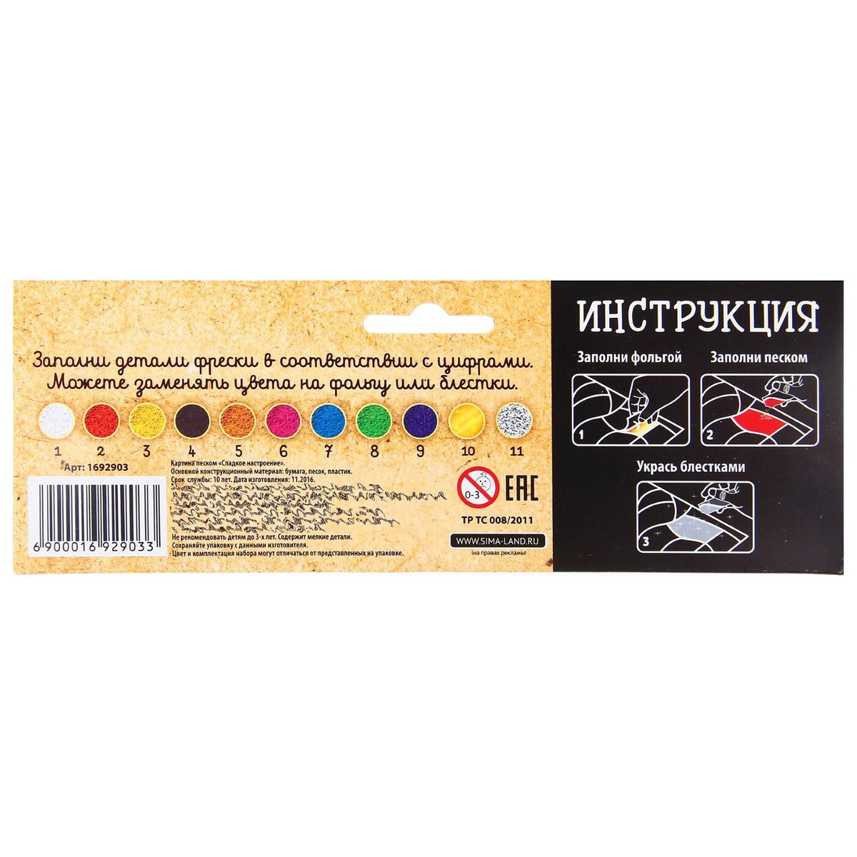 - Материал Картон, Пластик, Песок