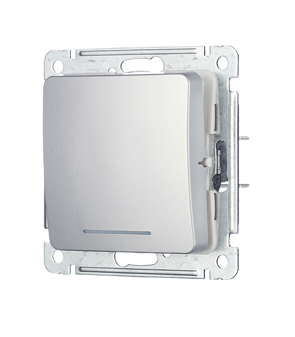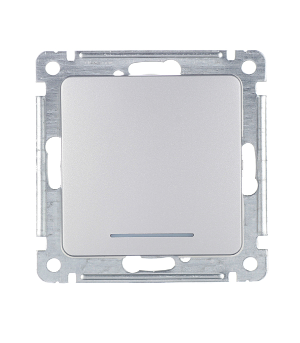 Механизм выключателя с/у одноклавишного с самовозвратом с индикацией Hegel Master серебро