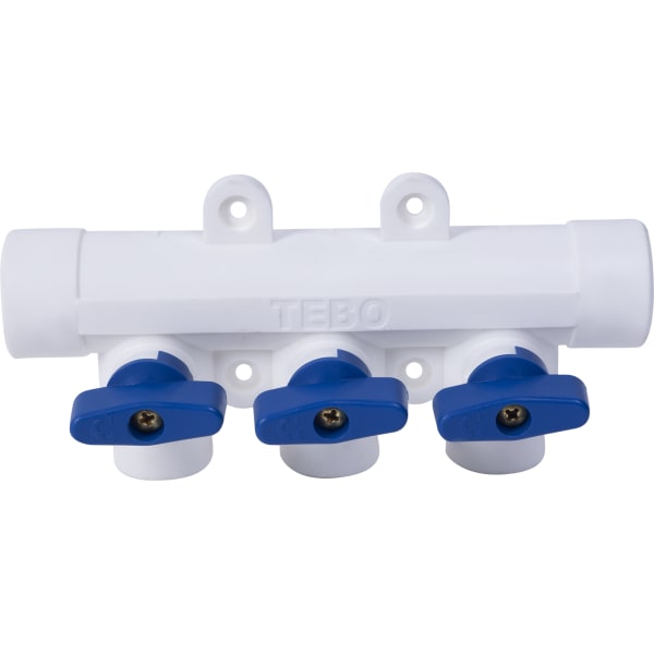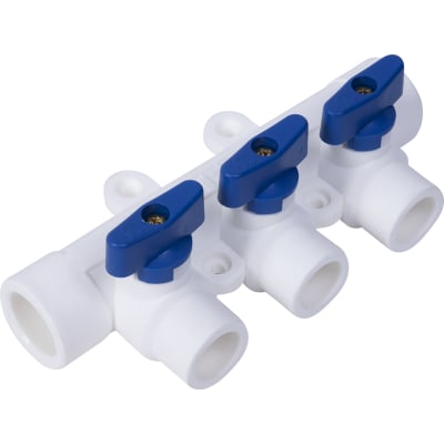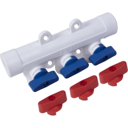 Коллектор Тебо, 3 выхода c кранами, 25х20 мм, полипропилен