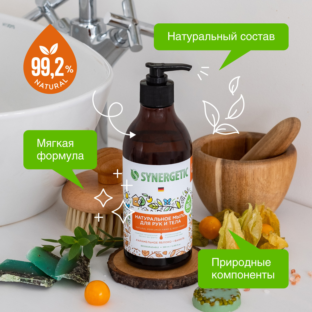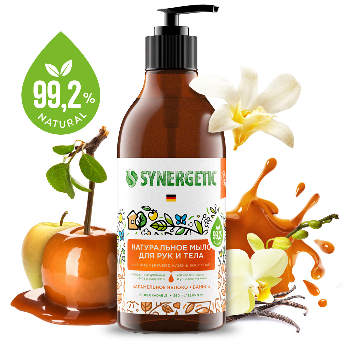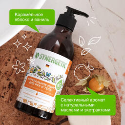 Мыло косметическое Synergetic Карамельное яблоко и ваниль, натуральное, биоразлагаемое, для рук и тела, 380 мл