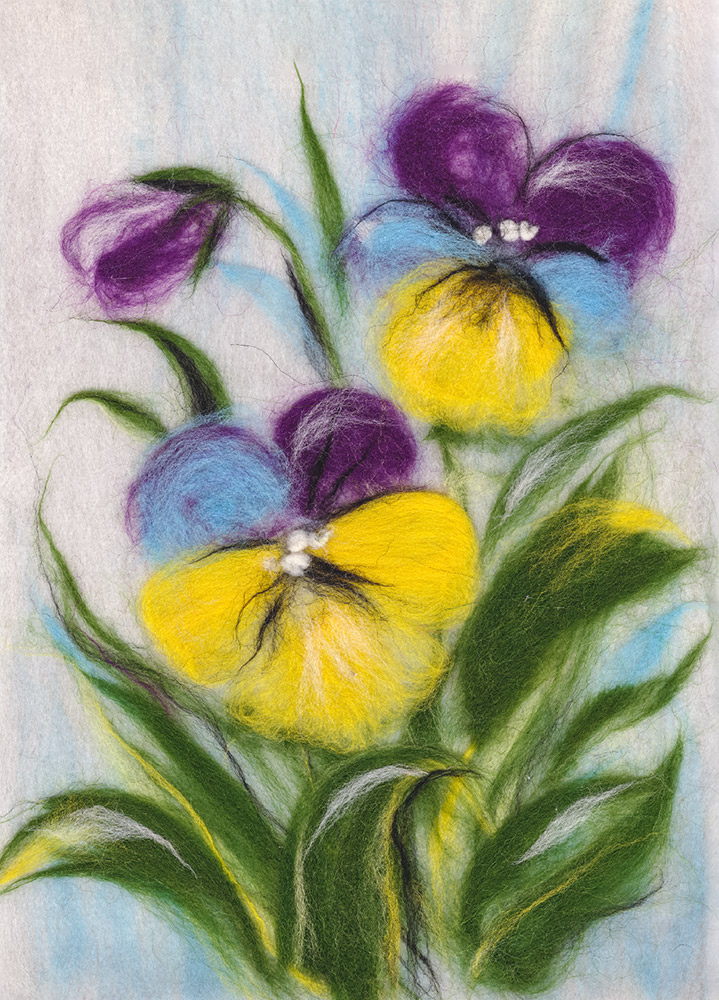 - Состав набора Пинцет, Пластиковый трафарет, Флизелин "Gamma", Шерсть для валяния (100% шерсть)