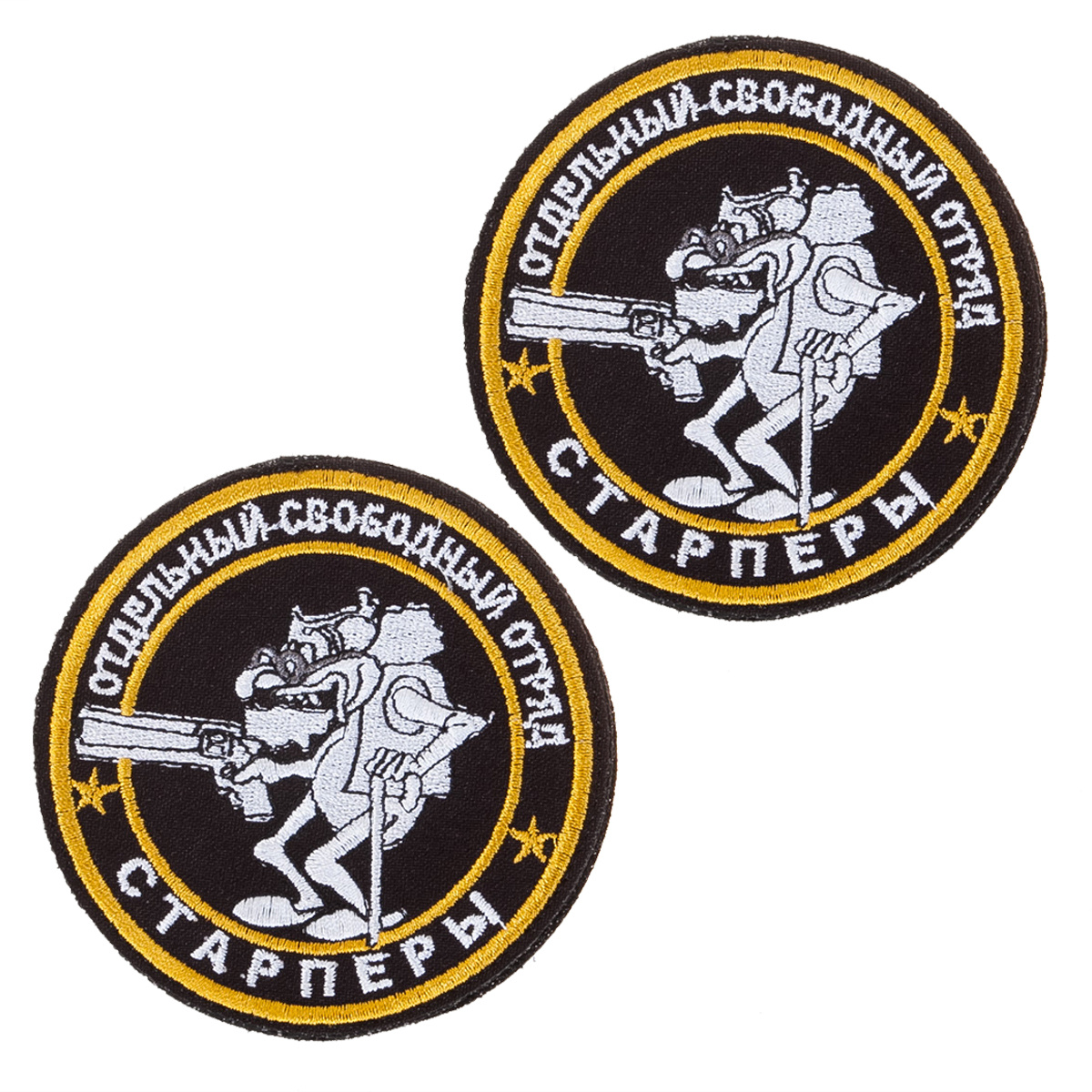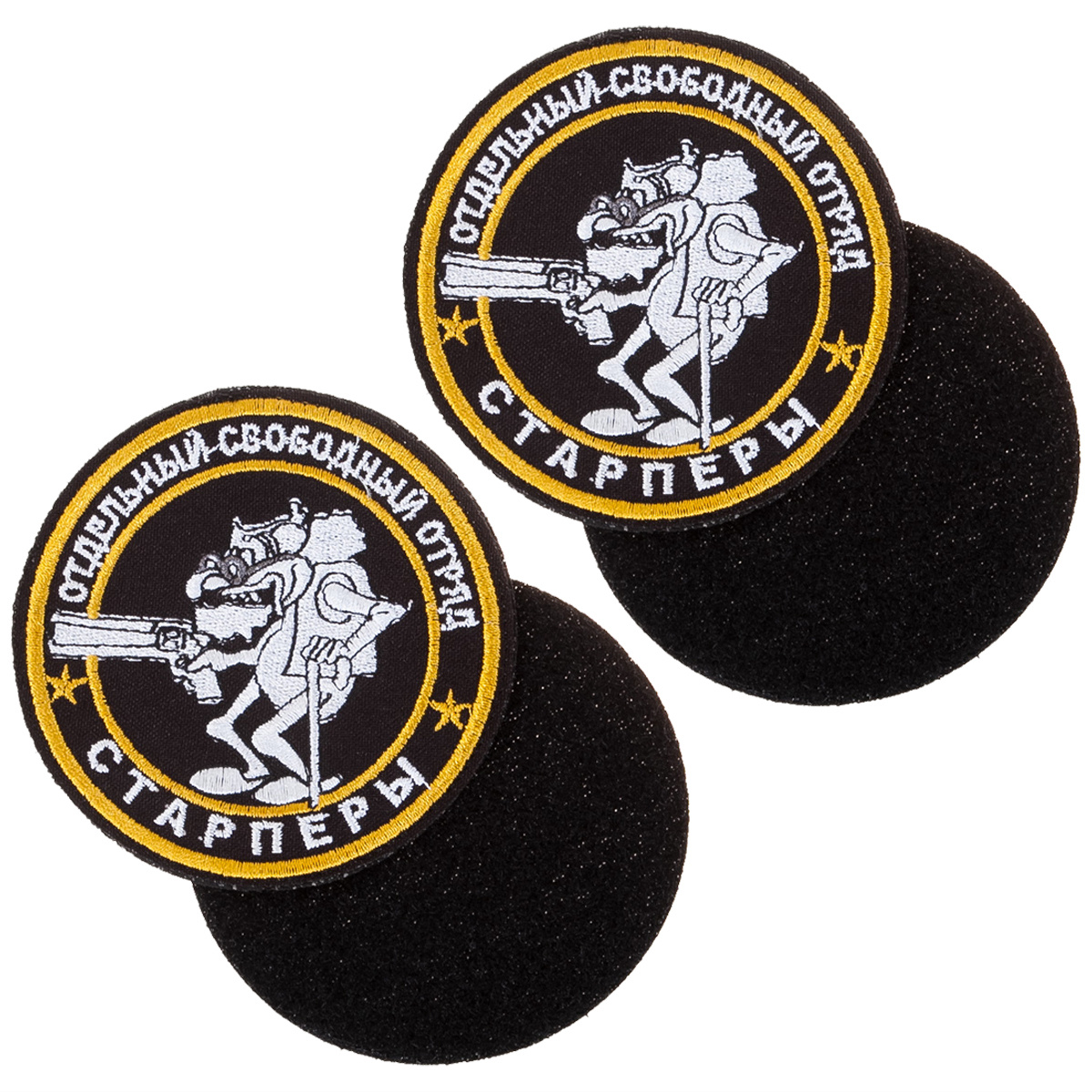 Комплект из 2 шт. нашивок (шеврон патчи) "Отдельный свободный отряд старпёры" вышитые на липучке D8 черные