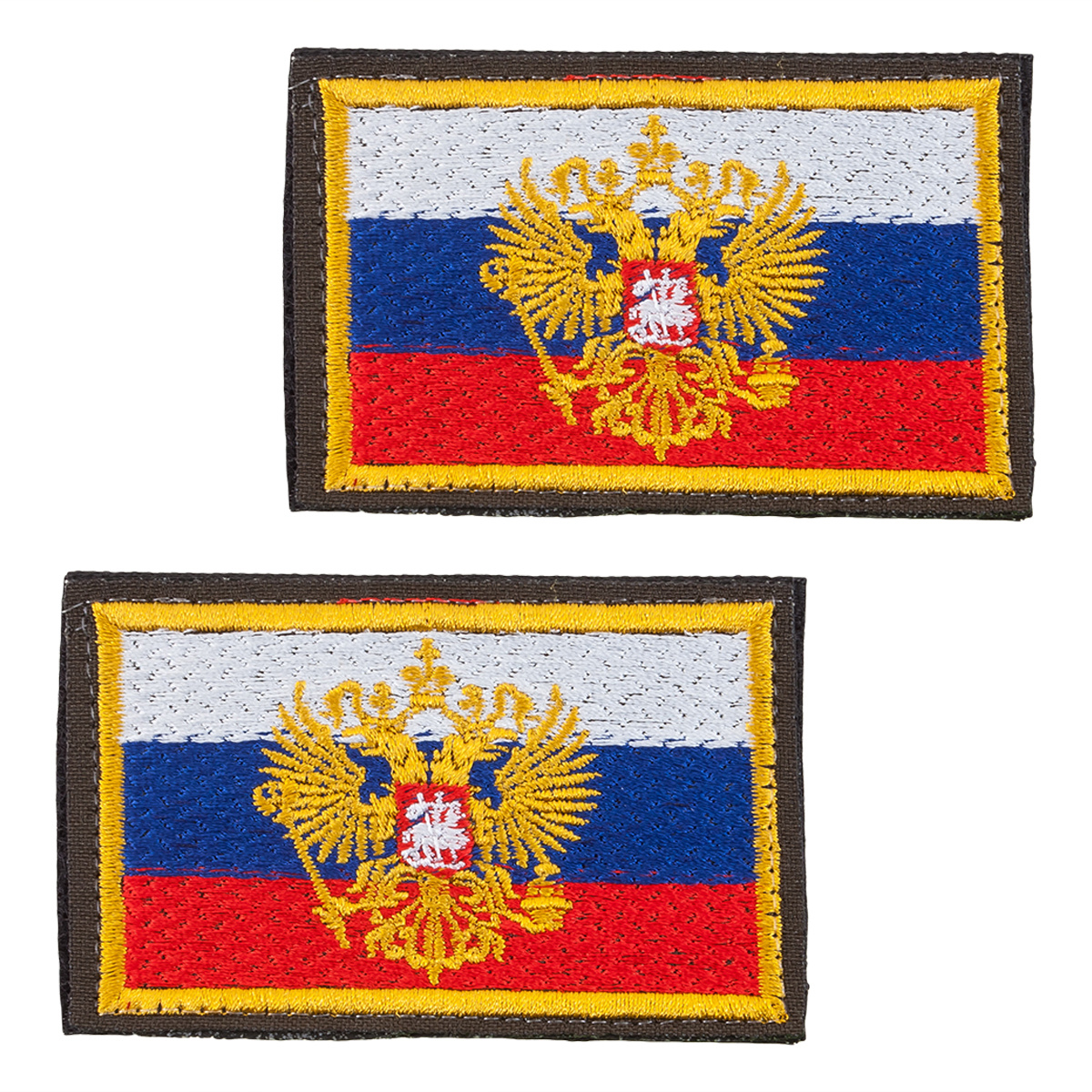 Комплект из 2 шт. нашивок (шеврон патчи) "Флаг Россия" вышитые на липучке 7,5х4,5 оливковые