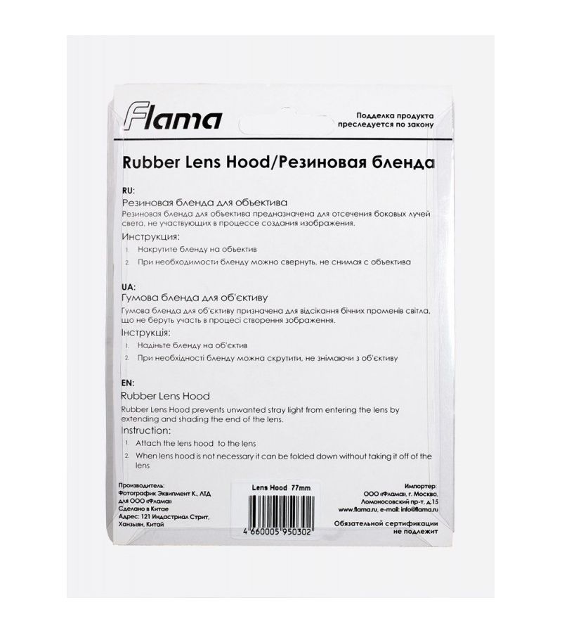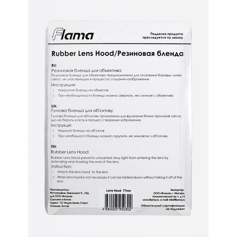 В наличии 490 руб. Бленда Flama резиновая ф 52 mm