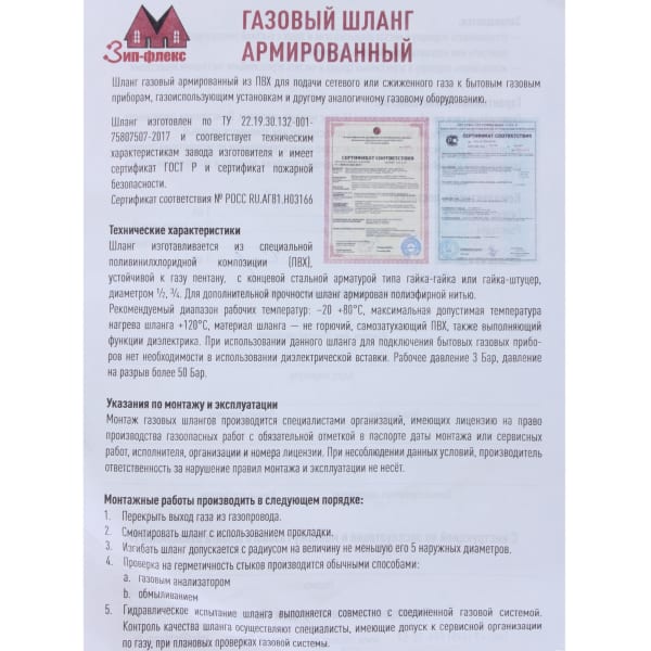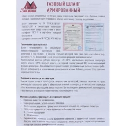 Гибкая подводка для газа армированная, 1/2", гайка-штуцер, 100 см