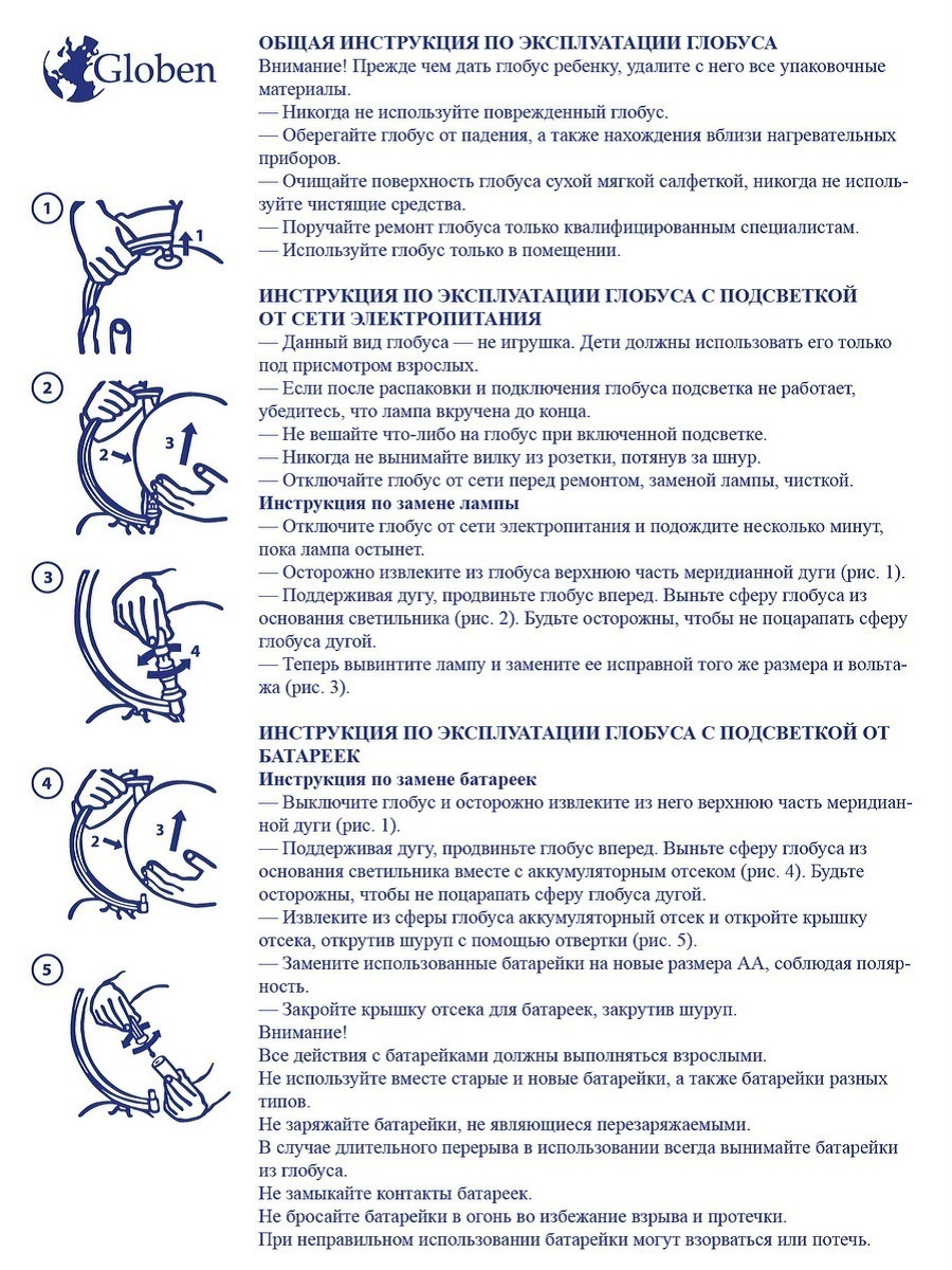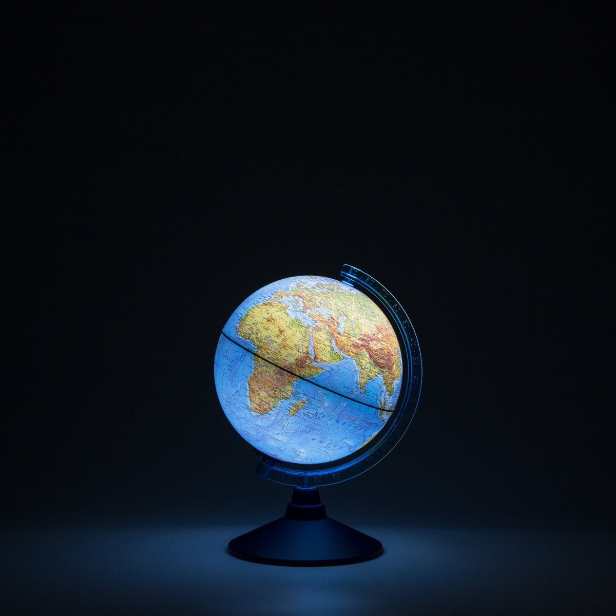 Globen Глобус Земли физический рельефный с подсветкой от батареек, диаметр 21 см.